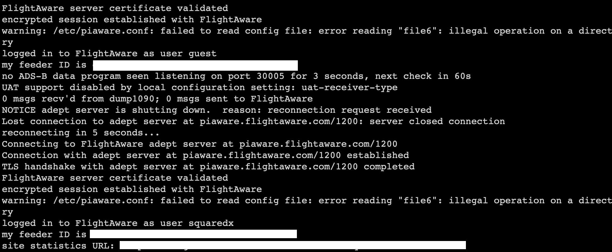 This will start the FlightAware application within the container, next we need to go to the FlightAware website to claim the receiver